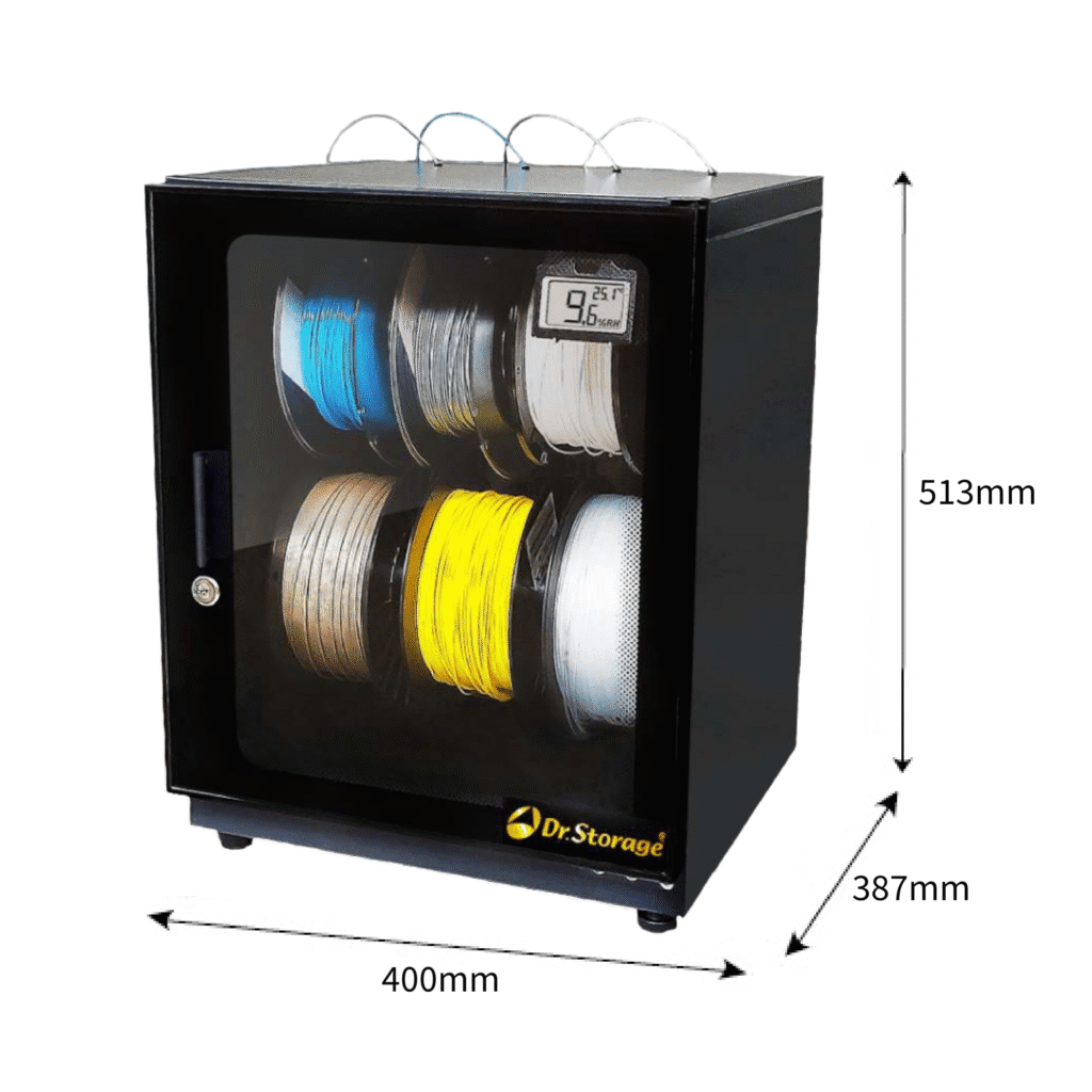 Equipped with a high-precision temperature and humidity sensor display, the Filament Dry Cabinet can record up to 40,000 data points, giving you comprehensive insights into the internal conditions. The display provides real-time temperature and humidity readings, allowing you to easily manage the storage environment inside the cabinet.