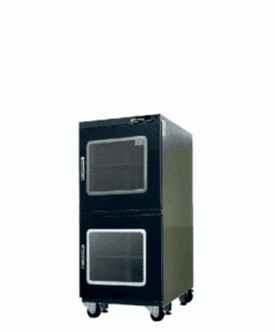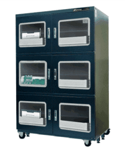 These dry cabinets are available in a range of sizes from a capacity of 202L to 1250L and are plug and play, featuring a rugged, air tight design. Standard features include an anti-static package, adjustable shelves, locking doors, storage bins, a digital display, calibration reminder, and sensors with high accuracy.